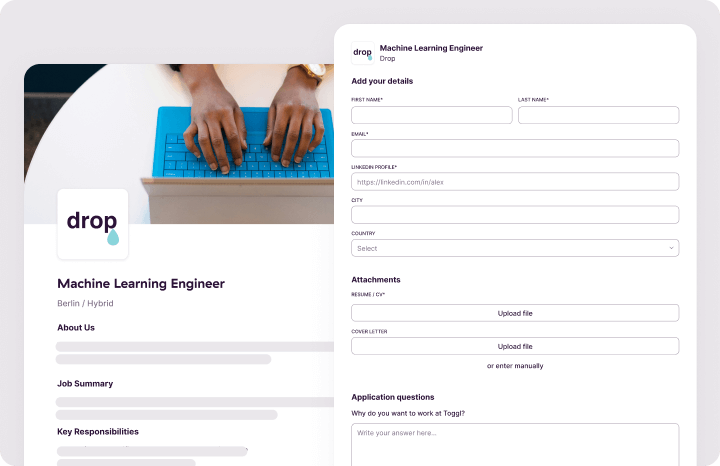 Add whatever you want to make your job attractive—qualifying questions, CV uploads, and more. Then, share the job with a simple link!