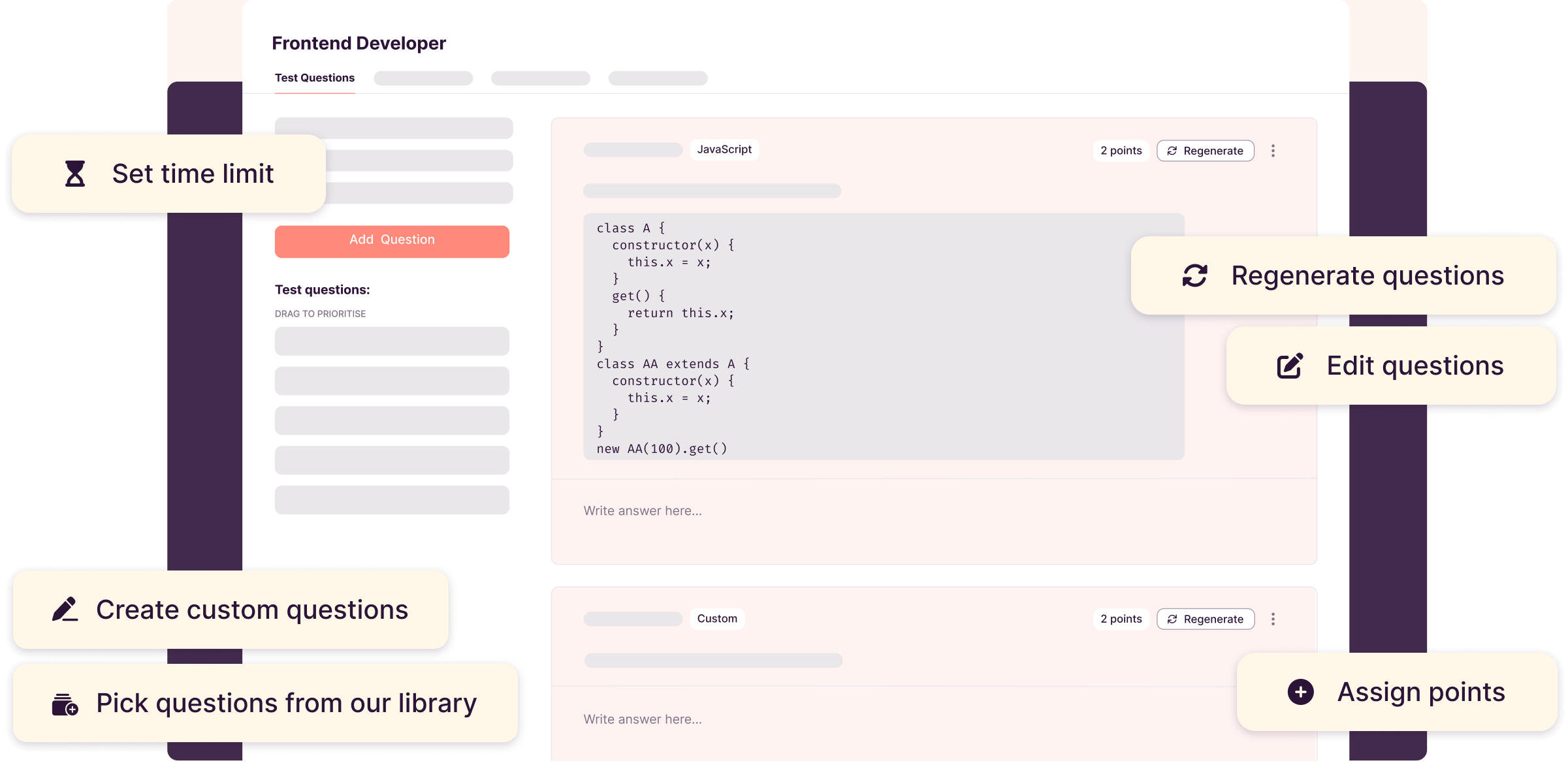 | Toggl Hire | • Customizable hiring pipeline • 180+ pre-made skills assessment tests • Over 200,000 expert test questions • Automatic test grading with scores • Test performance statistics • Candidate source analytics • Anti-cheating and anti-AI technology | Yes | Free plan |