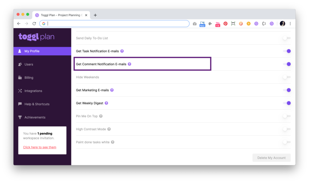 With this feature, which eventually allows real time collaboration in Toggl Plan, you can have a conversation about any task, right where your planning happens. Write a comment or ask a question, and use “@” + Name (e.g. @LauraLaasi) to make sure the right people see it.