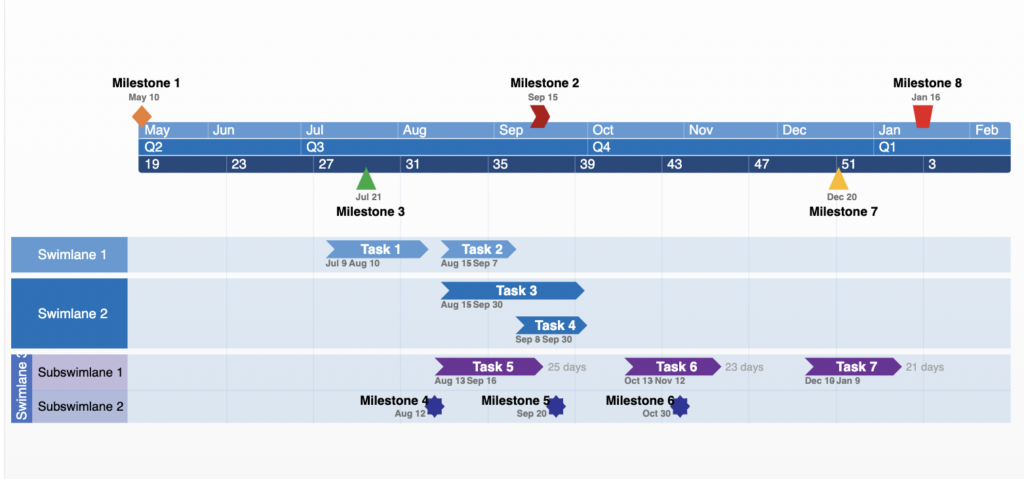 - Keep track of important events by making project milestones visible across other timelines
