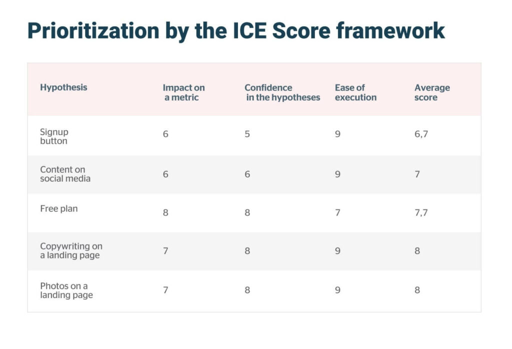 Stakeholders assign a value out of 10 to each factor. The average of all three factors is your PIE score.