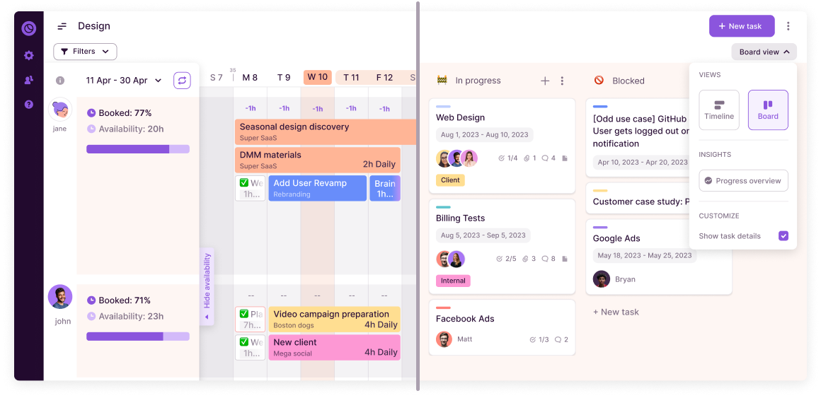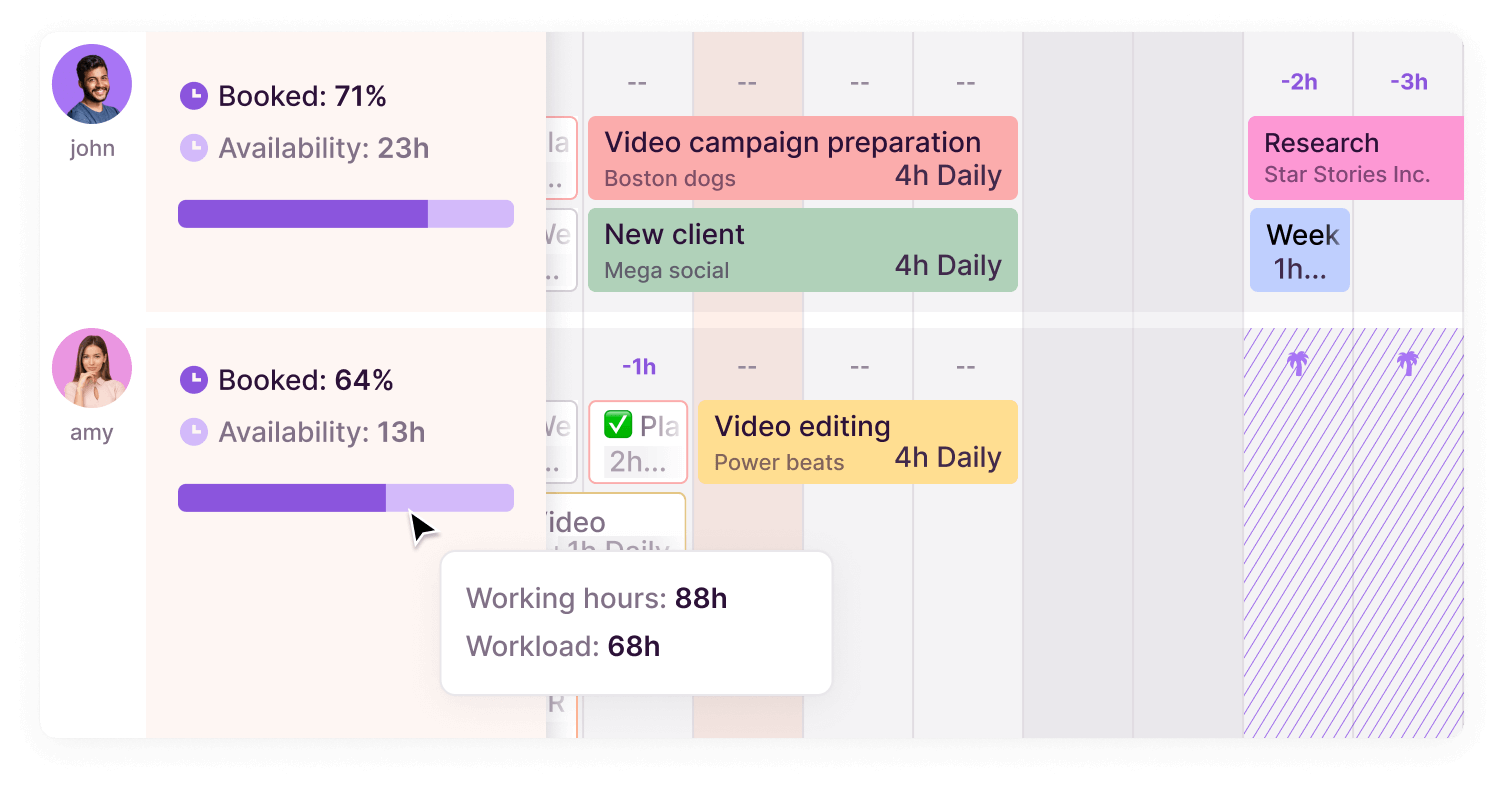 Toggl Plan is a simple, visual way for agencies and internal teams to balance team capacity and project workloads