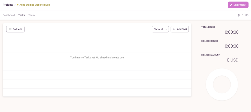 Click on the project you’ve just created and head to the ‘Tasks’ dashboard.