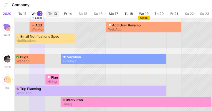 If you need a resource calendar, Toggl Plan’s Team Timelines are what you need.