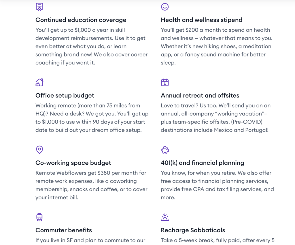 Then you have a list of common employee benefits that remote employees also want a piece of: