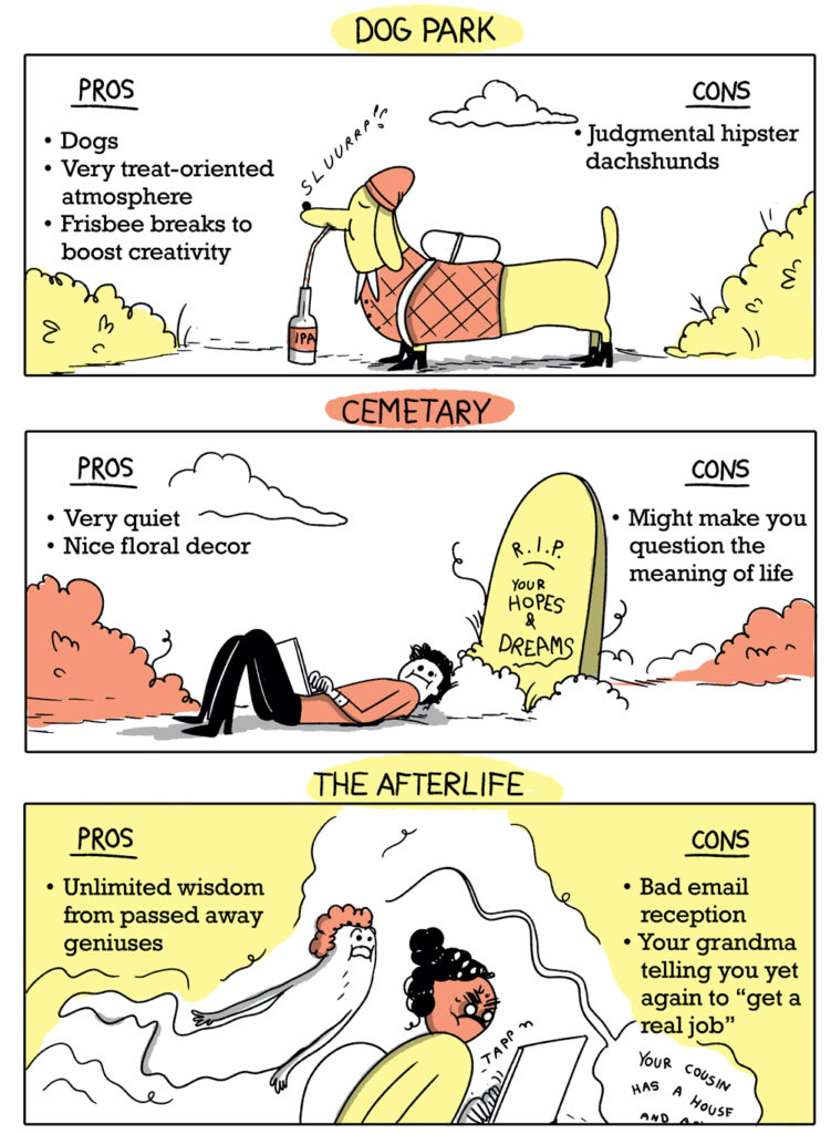 You may have the best tools at your disposal: ‘grammable plants and our very own time tracker for enhanced productivity. But maybe your apartment is the size of a shoebox. Maybe your housemate has staked out a claim over the living room coffee table. Or maybe you just need a change of scenery, and are wondering about the possibility of remote workspaces beyond the meager hand you’ve been dealt.