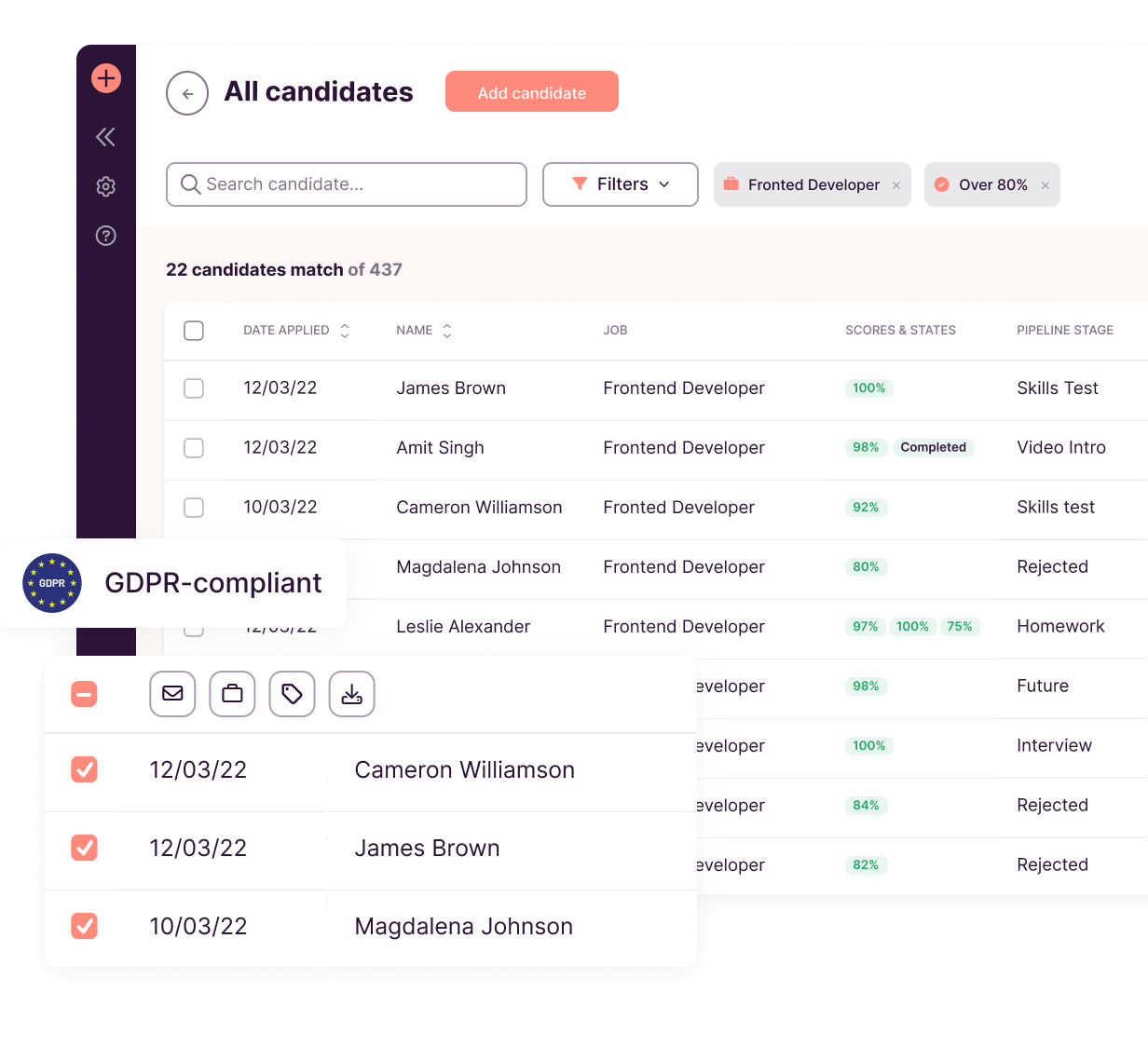 Toggl Hire is the only full-cycle hiring platform that's purpose-built for skills-based hiring. Enjoy ATS capabilities out of the box. Track candidate status, customize your hiring pipeline, automate emails and collaborate with team members — all in one tool, at no additional cost.