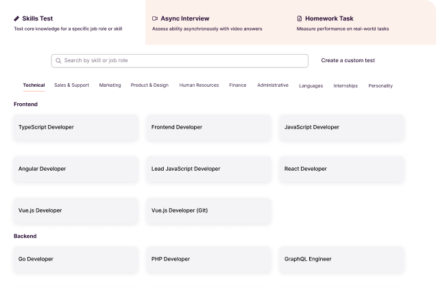 Our skills tests are created and peer-reviewed by industry’s top practitioners. Instead of aggressive proctoring and trick questions, we believe in job-specific competency testing to find top talent.