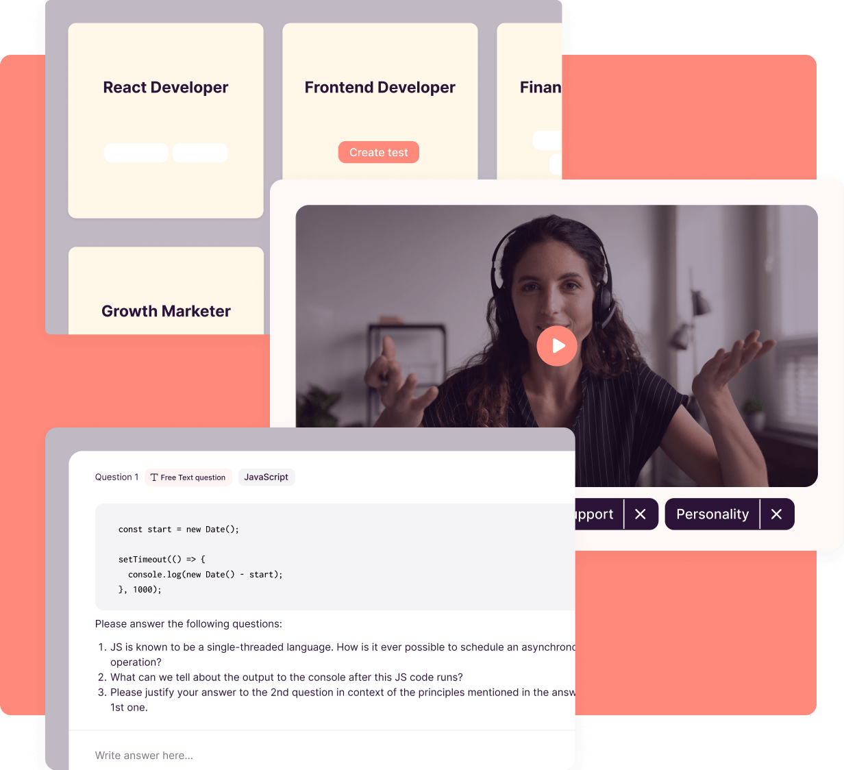 Toggl Hire supports various test formats, including quiz-like assessments, pre-recorded video interviews and long-form homework assignments. Plus, we give you the option to build custom tests on all plans.