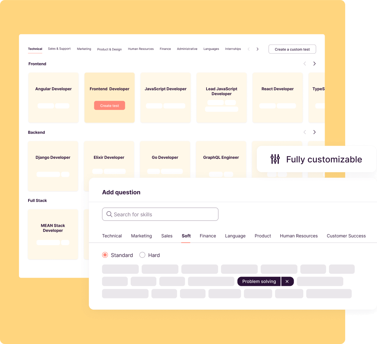 Candidate evaluation used to be a tricky, time-consuming process. But now you can create a job-specific skills test simply by pulling questions from our library.