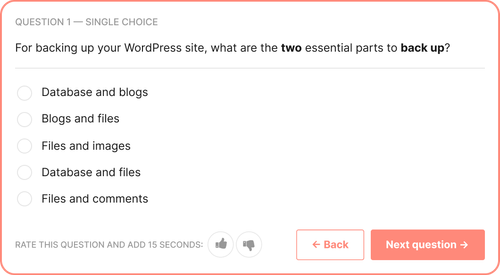 We’re big on practical questions and useful knowledge. Senior reviewers and question performance data help us weed out bookish questions and guarantee test quality.